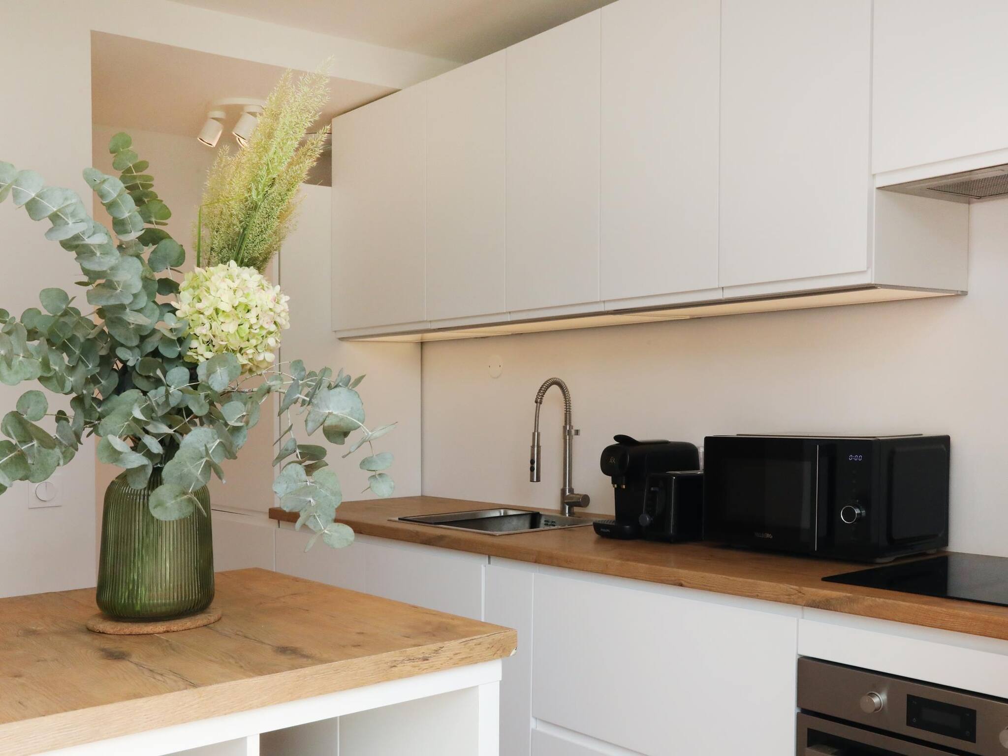 The accommodation is elegantly decorated, creating a warm and charming atmosphere. Enjoy a generous living space bathed in natural light, where you can relax and chat, with an impressive living room. The accommodation also has a fully equipped kitchen with access to the garden, which will provide you with a sense of peace and relaxation for your getaway.