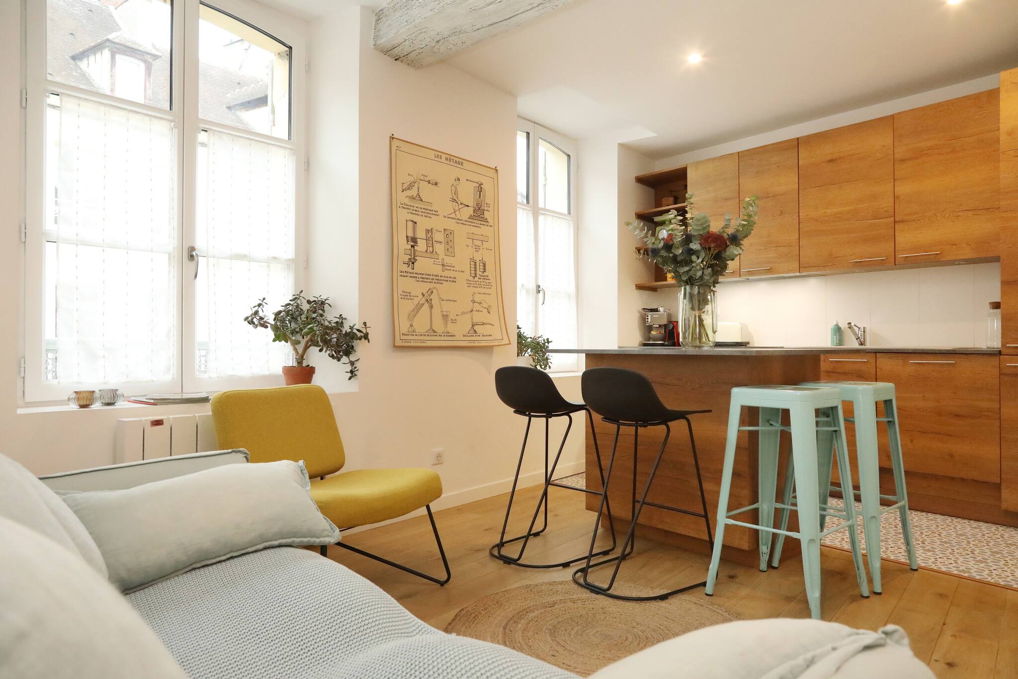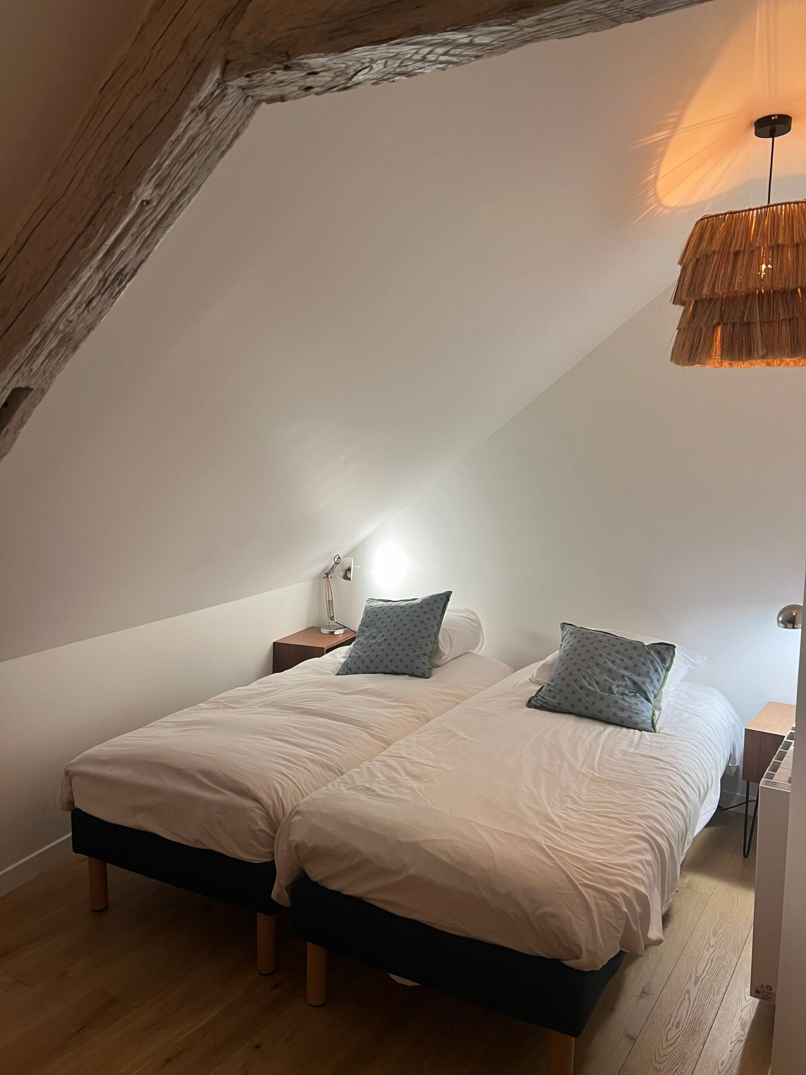 The terraced house in Senlis has 2 bedrooms and has capacity for 4 people. The terraced house is tastefully-furnished, is fully-equiped, and is 70 m². The property is located 0 m from the city, 0 m from the nature reserve, 0 m from the lake, 0 m from the thermal springs, 50 m from Chez nous the restaurant, 150 m from Intermarché Express supermarket, 400 m from Gare routière de Senlis bus station, 500 m from Hopital de Senlis hospital, 10 km from Gare de Chantilly- Gouvieux train station, 10 km from Golf de Chantilly, Raray golf course, 15 km from Parc Astérix amusement park / theme park, 25 km from Aéroport Roissy Charles de Gaulle international airport. The house is situated in a lively neighborhood in the center of the city. The accommodation is equipped with the following items: washing machine, dryer, iron, internet (Wi-Fi), hair dryer, electric heating, 2 fans, 1 TV. In the induction open plan kitchen, refrigerator, microwave, oven, freezer, dishwasher, dishes/cutlery, kitchen utensils, coffee machine, toaster and kettle are provided.
