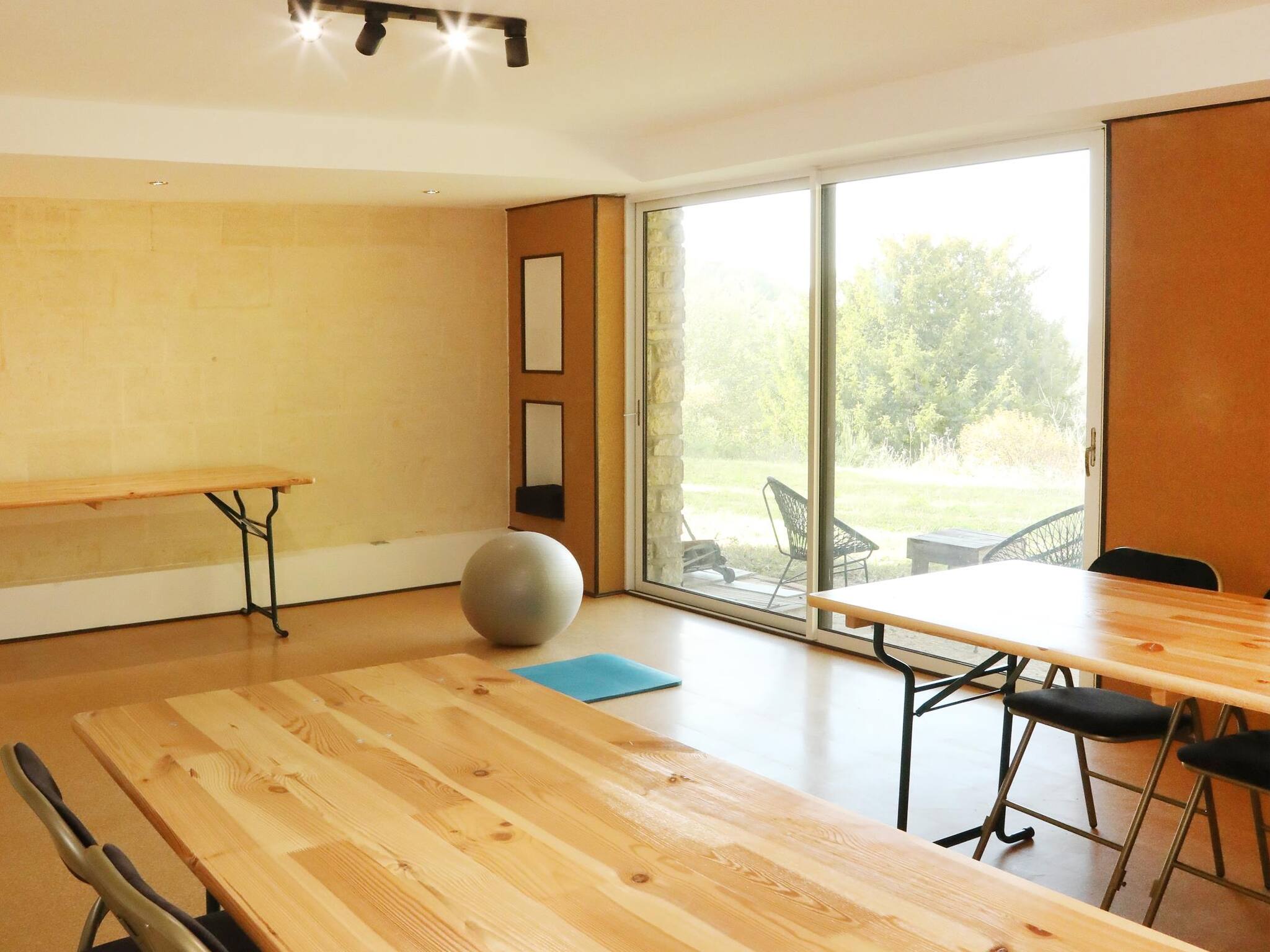 - Salle de yoga / réunion modulable pour une dizaine de personnes.