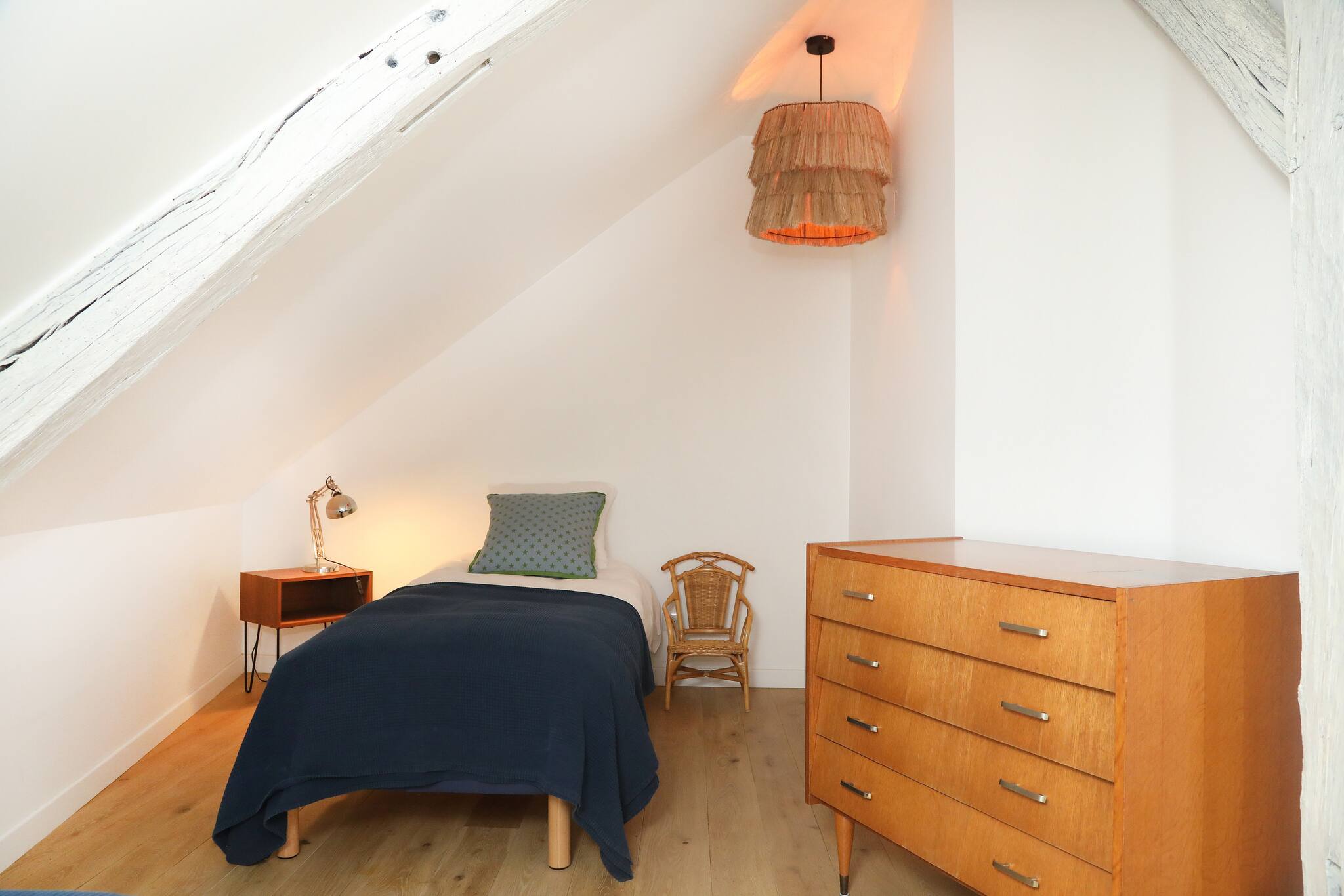 La maison est décorée avec élégance, créant une atmosphère chaleureuse et charmante. Profitez d'un espace de vie généreux, baigné de lumière naturelle, où vous pourrez vous détendre et socialiser. L'hébergement comprend 2 chambres indépendantes : l'une avec un confortable lit double et l'autre avec deux lits simples. Elle dispose également d'une cuisine entièrement équipée et d'une salle de bain avec douche. Située en plein cœur de la ville de Senlis, vous serez à quelques pas des attractions locales, des restaurants et des boutiques.