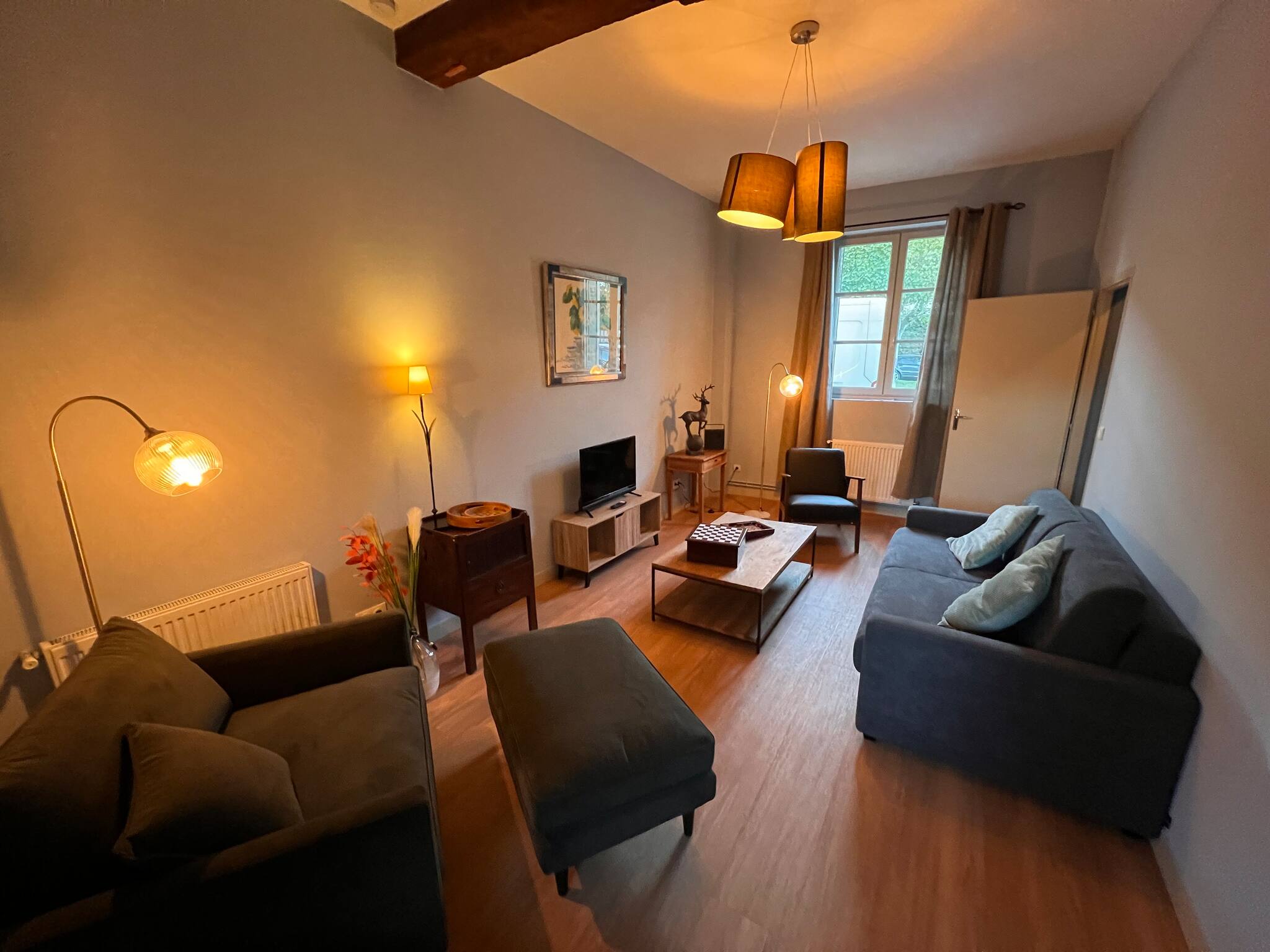Il est à quelques mètres des restaurants et commerces et à 10 min à pied de la forêt (maison de ville avec accès à la campagne)