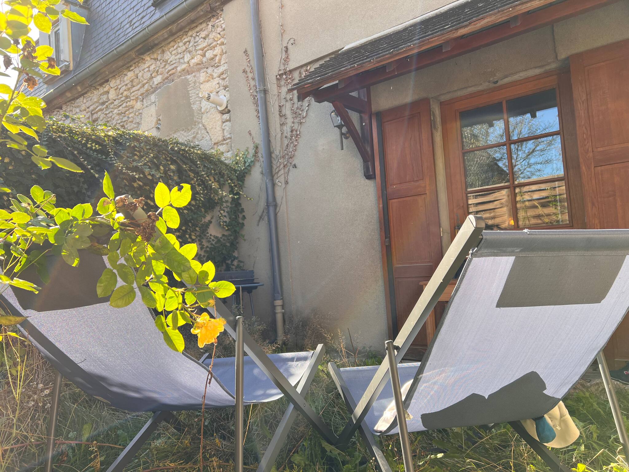 Jardinet privé avec transats et barbecue weber
