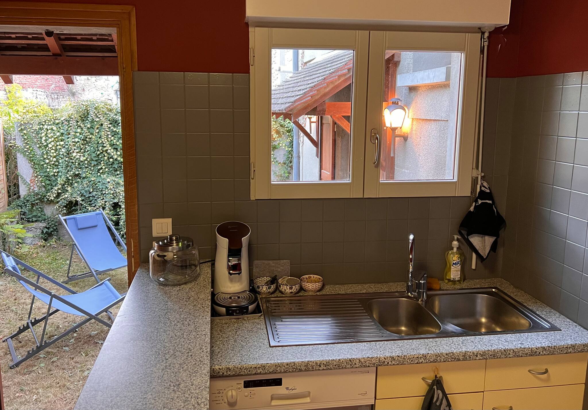 -cuisine bien équipée (lave vaisselle et tout l’électroménager) avec porte sur le jardinet