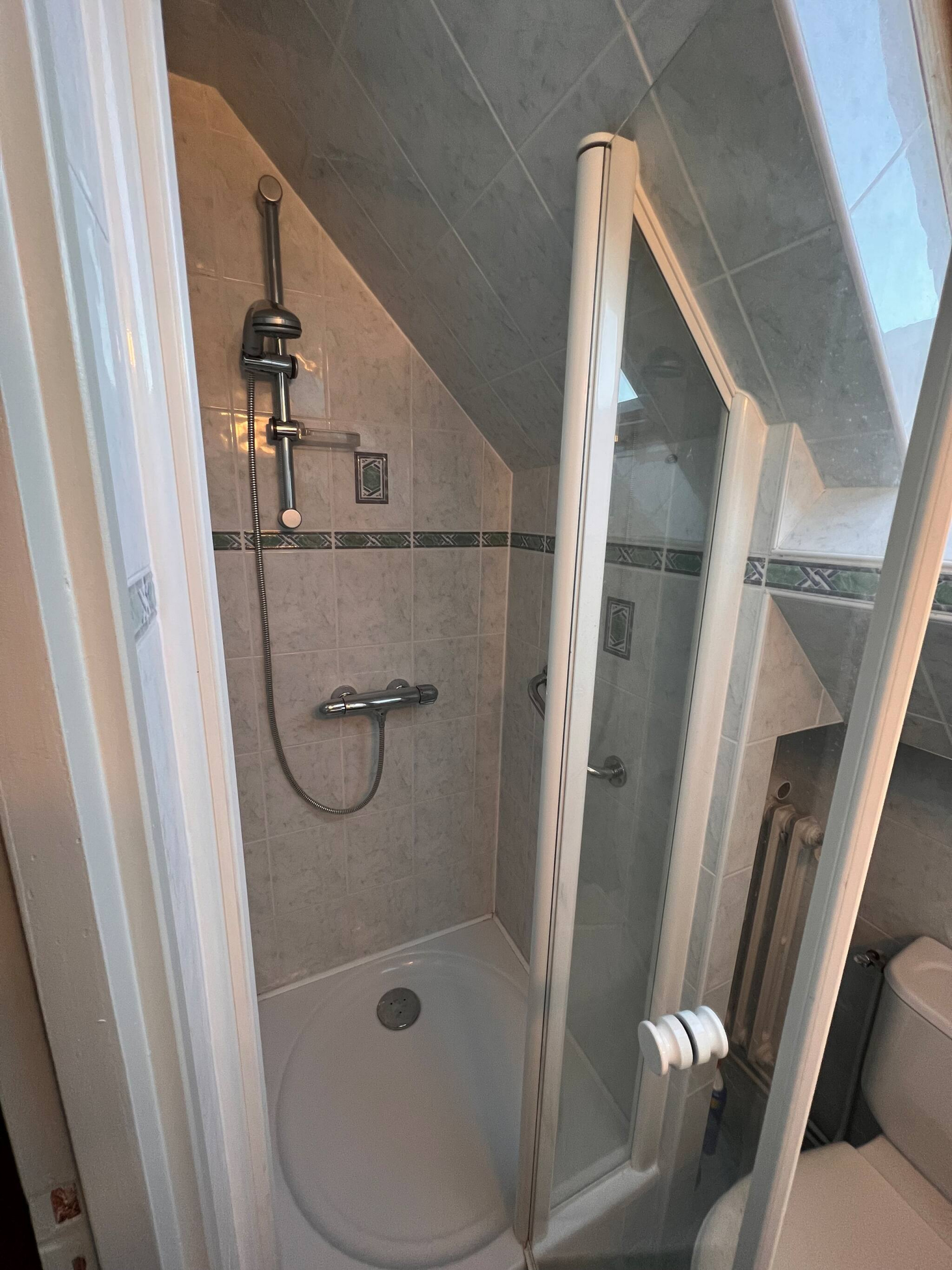 -1 salle de bain avec douche et toilettes