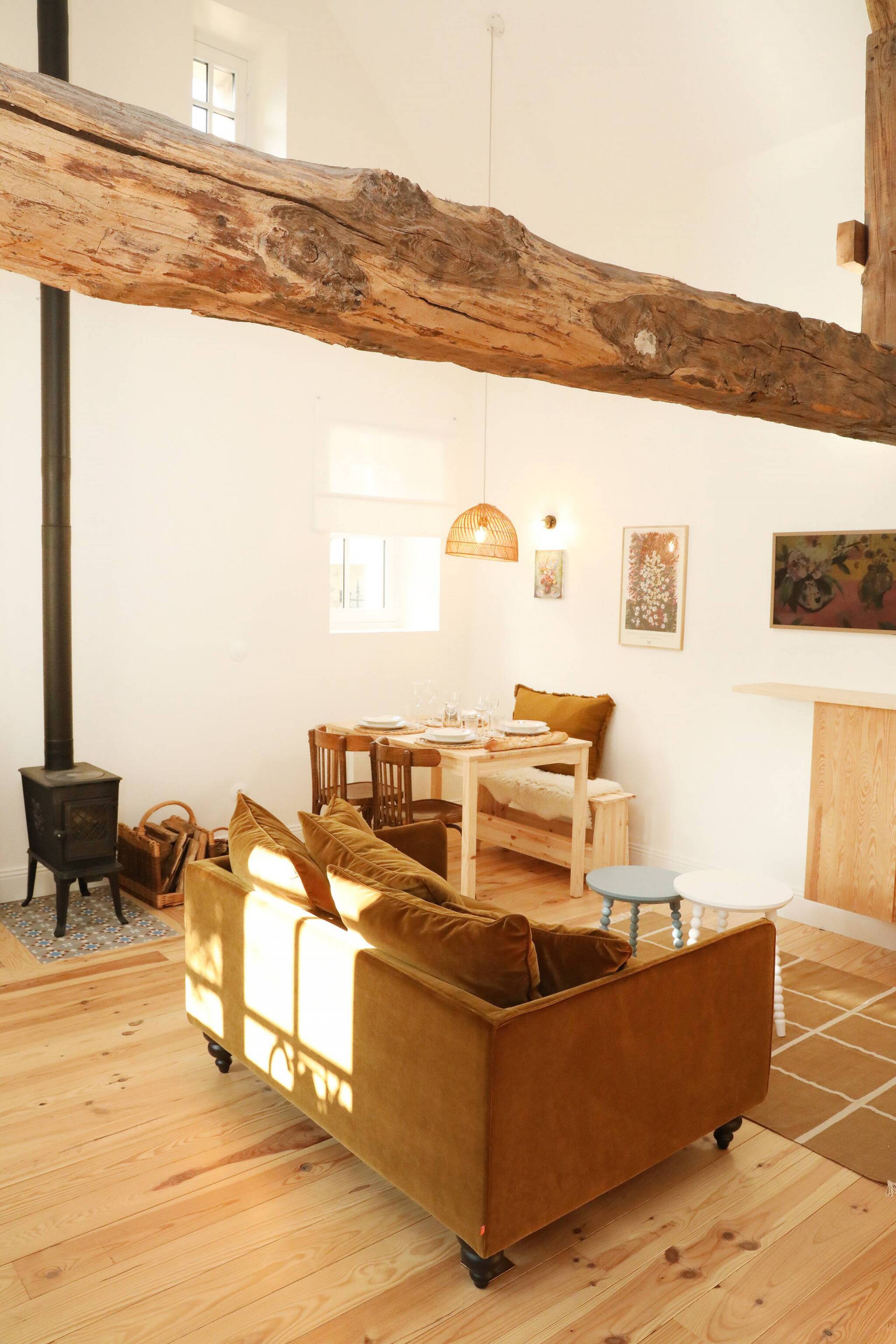 Installez-vous près du poêle à bois, savourez un café pendant que les enfants jouent dans la chambre perchée sous les poutres.